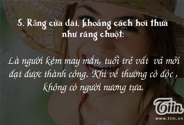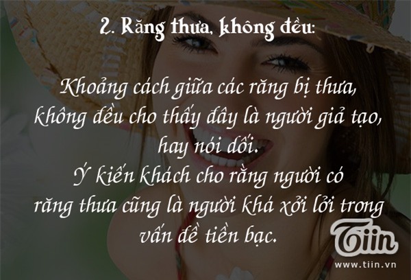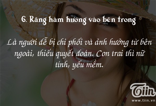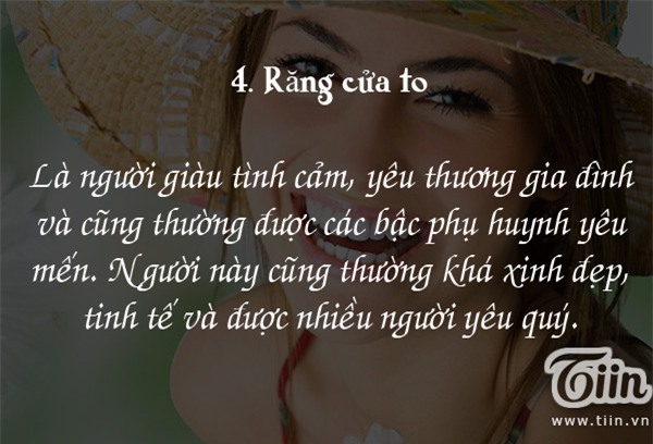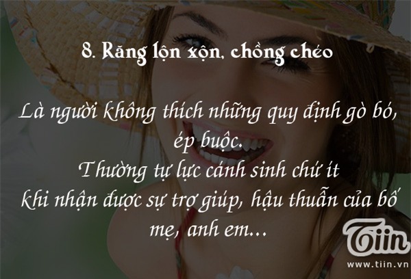 Người có hàm răng đẹp, thẳng tắp là người thật thà, đáng tin cậy. Người có răng cửa giống răng chuột thường là người cô độc khi về già.