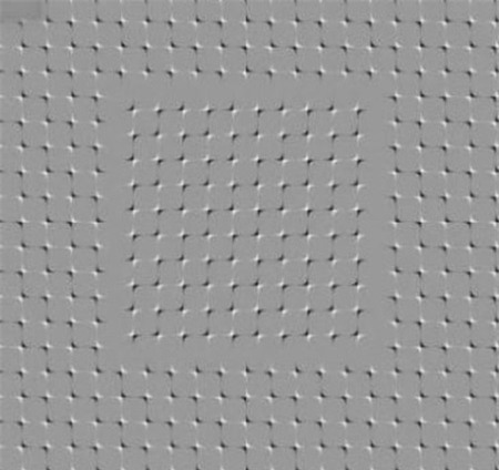 Đây là một ảnh tĩnh. Nhưng nếu bạn đang phải chịu áp lực tâm lý, bạn sẽ thấy đây là một bức ảnh động. Áp lực tâm lý càng lớn, thì ảnh chuyển động càng nhanh. Trong khi đó, các em nhỏ xem hình thường sẽ thấy bức hình không hề chuyển động. |