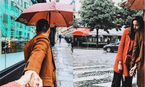 Dù không khoe ảnh rõ mặt, nhưng Kỳ Duyên đã rất hạnh phúc khi chia sẻ những bức ảnh được người yêu dắt đi hay tựa vai như thế này