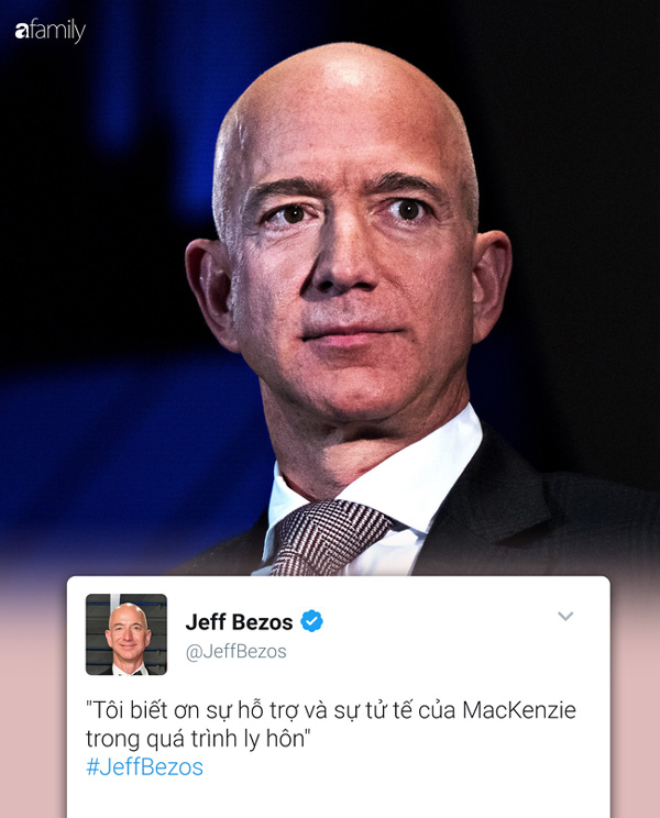 "Chúng tôi muốn mọi người biết một diễn biến mới trong cuộc đời của chúng tôi. Như gia đình và bạn thân của chúng tôi đã biết, sau một thời gian dài yêu thương và thử ly thân, chúng tôi đã quyết định ly hôn...", Jeff Bezos cùng vợ, bà MacKenzie, cùng thông báo trên Twitter.