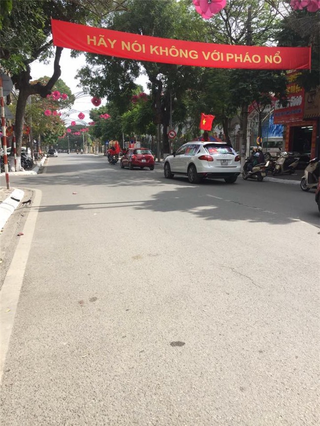 Trên đường phố, nhiều ô tô cũng đã treo sẵn cờ đỏ sao vàng để sẵn sàng cổ vũ đội nhà