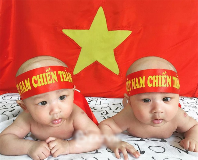 Hai anh em sinh đôi cũng được bố mẹ truyền lửa, chúc đội tuyển Việt Nam chiến thắng!