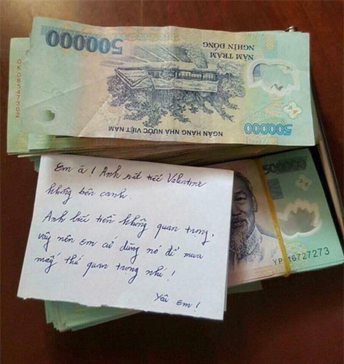 Anh biết tiền không quan trọng. Vậy em cứ dùng nó để mua mấy thứ quan trọng. Yêu em!