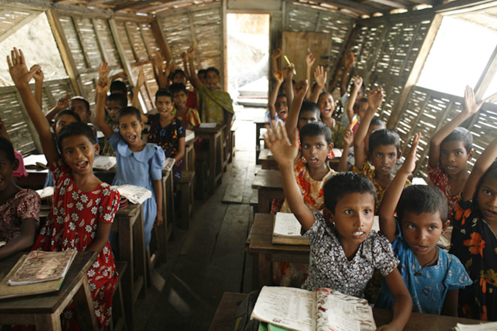 Bangladesh có nguồn tài nguyên thiên nhiên hạn chế và bị tác động mạnh mẽ bởi biến đổi khí hậu. Lũ lụt xảy ra thường xuyên, điều này khiến trẻ rất khó khăn trong việc đến trường. Nhưng người dân ở một số vùng của Bangladesh đã học cách sống chung với những thách thức khí hậu và tạo ra các lớp học cho trẻ em trên thuyền. Cách học sáng tạo này có nghĩa là trẻ em từ các cộng đồng ven biển bị cô lập có thể truy cập vào thư viện và các cơ sở học tập.
