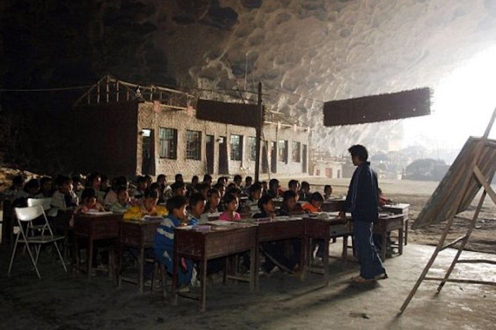 Trường tiểu học ở Trung Quốc này nằm bên trong lòng một hang đá và được cho là trường học hang động duy nhất trên thế giới. Với sáu lớp học và 200 học sinh, ngôi trường độc đáo này mang đến cho trẻ em từ những ngôi làng xa xôi một cơ hội học tập. Thiếu nước và thực phẩm do sa mạc hóa và hạn hán khiến cơ hội học tập trở thành niềm hy vọng lớn nhất của các em.