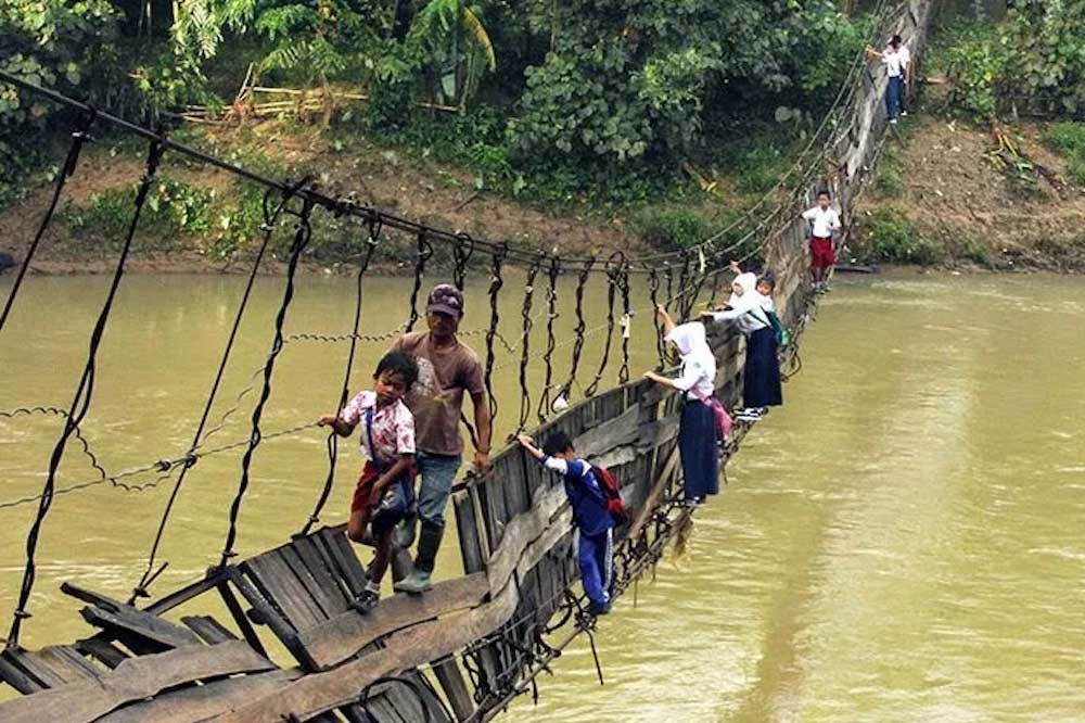 Trong khi nhiều trẻ lười và luôn muốn trốn học để dành thời gian chơi game, những đứa trẻ khác phải vượt qua những trở ngại nguy hiểm để đến trường đúng giờ. Những học sinh này và cha mẹ của họ từ ngôi làng nhỏ Levak của Indonesia phải đi qua một cây cầu rất nguy hiểm có thể sụp đổ bất kỳ lúc nào.