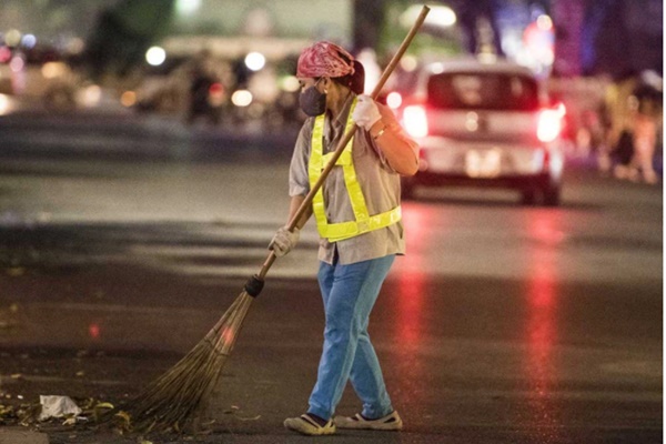 Nhìn xa tưởng bà mẹ dắt 3 cậu con trai đi dạo phố.