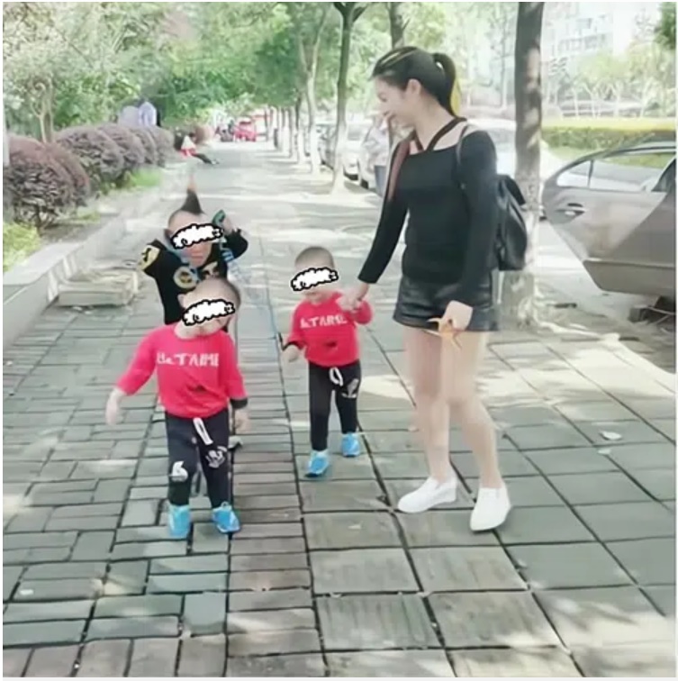 Mới đây trên mạng xã hội Trung Quốc có lan truyền những bức ảnh mà thoạt nhìn qua ai cũng cho rằng đó là cảnh một bà mẹ trẻ dắt 3 đứa trẻ đi dạo phố.