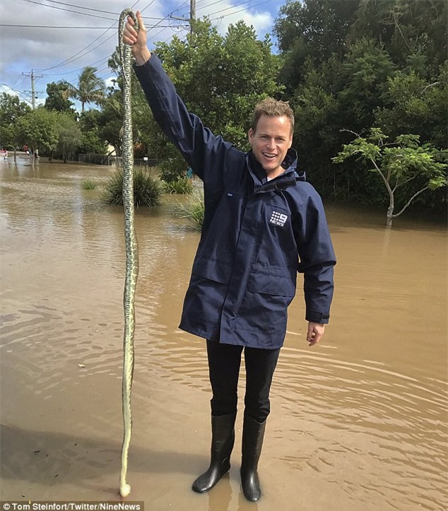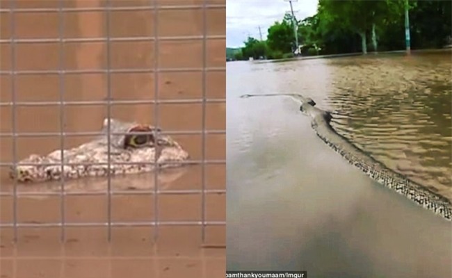 Với tình trạng mưa lũ, ngập lụt xảy ra tại nhiều khu dân cư, đường phố tại Queensland, Australia, chính quyền thành phố đã ra cảnh báo cho người dân đề phòng những "quái vật" đi lạc trên đường hay sân vườn nhà.
