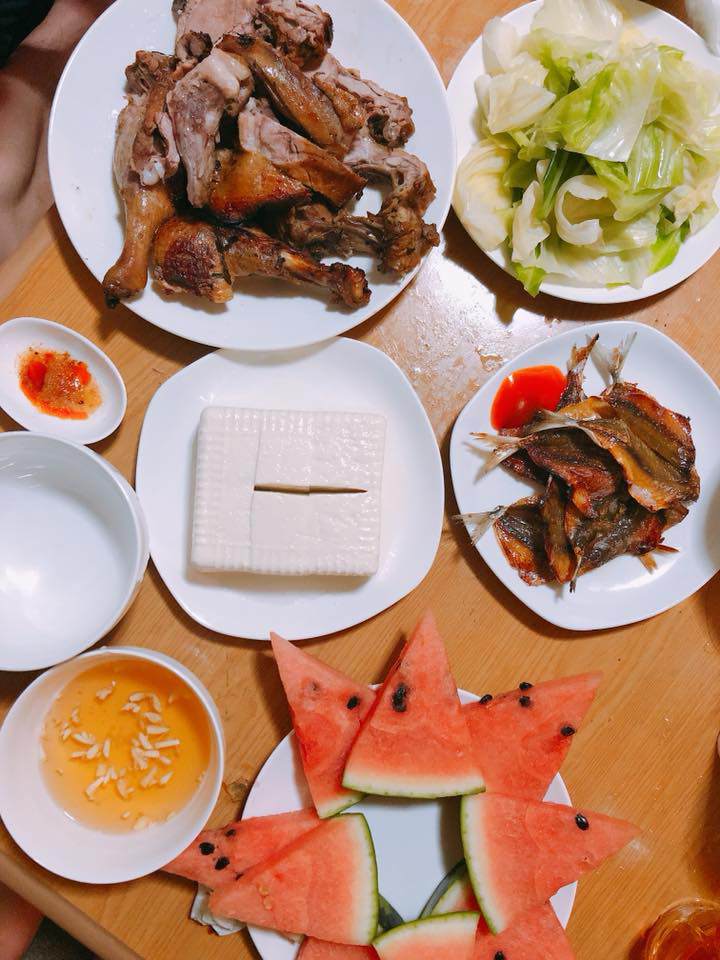 Một bạn khoe mình chiên xúc xích ngon (Ảnh: Dương Dương Clover)