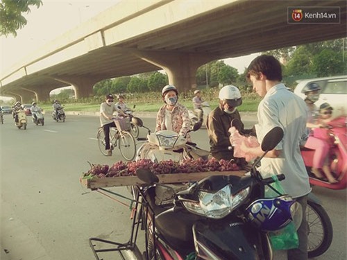 Long... bỗng như đỏ rực hằn lên bởi các xe hàng rong chất đầy nho tươi