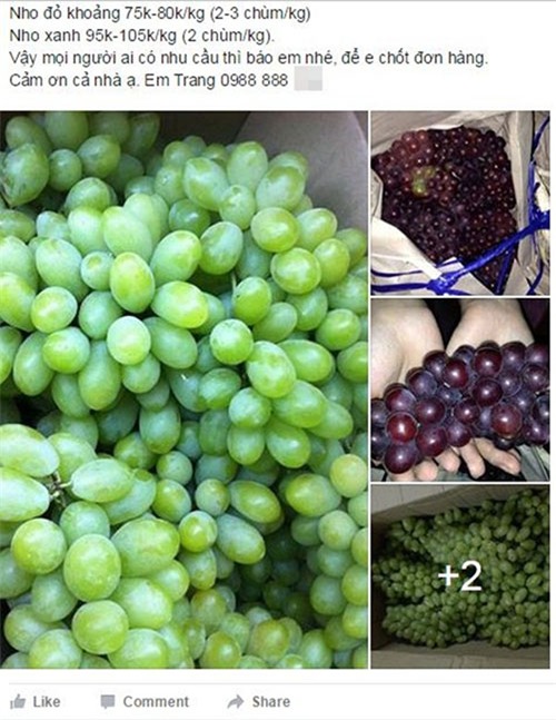 Giá nho đỏ trên "chợ" mạng cũng có sự chênh lệch rất lớn, từ 38.000 đến 80.000 đồng/kg.