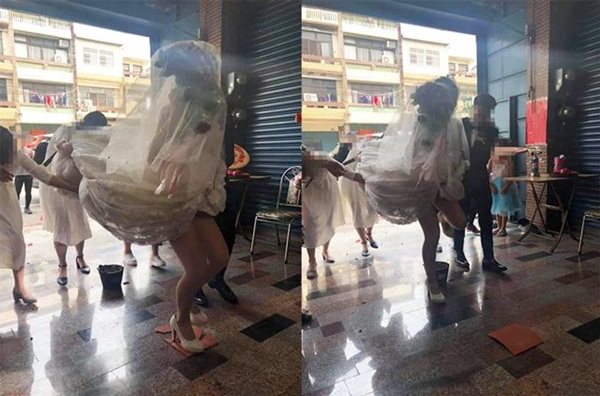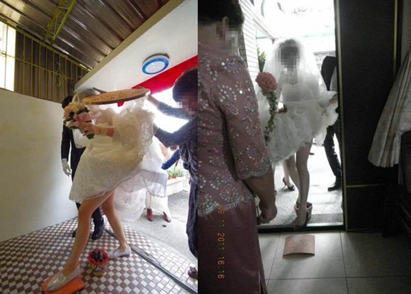 Theo phong tục đám cưới truyền thống của người Trung Quốc, khi cô dâu đi đến cửa nhà chồng sẽ phải bước qua một chậu than để ngoài cổng. Điều này mang ý nghĩa rũ bỏ những điều xui xẻo bên ngoài, chỉ mang những điều may mắn, thuận lợi vào nhà, mong muốn cuộc hôn nhân luôn bền vững. Sau đó, cô dâu mới được vào nhà chồng để thực hiện những nghi lễ tiếp theo. Thế nhưng cũng chính vì phong tục này, một cô dâu người Trung Quốc đã gặp sự cố muối mặt ngay trong ngày trọng đại của mình.