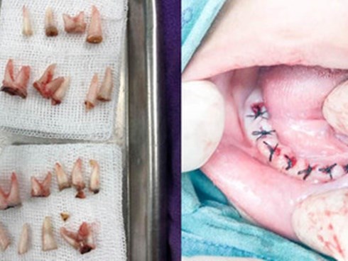 Vì sự chủ quan và hiểu biết sai lệch của bố mẹ, cậu bé chịu đau đớn phải nhổ cả hai hàm răng, chỉ còn lại 2 chiếc răng nhỏ.