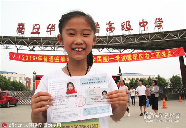 Ở điểm thi trường trung học số 2, thành phố Thương Khâu tỉnh Hà Nam, Trung Quốc có một thí sinh vô cùng đặc biệt. Đặc biệt bởi dáng vẻ thấp bé, gầy gò, nhỏ nhắn, và càng đặc biệt hơn khi thí sinh này mới chỉ 9 tuổi.