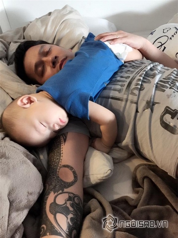 Những hình ảnh tình cảm của Phan Hiển khi ngủ cùng con trai