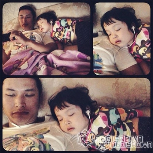 Tư thế ngủ dang tay rất giống nhau của nhạc sĩ Nguyễn Nhất Huy và con gái