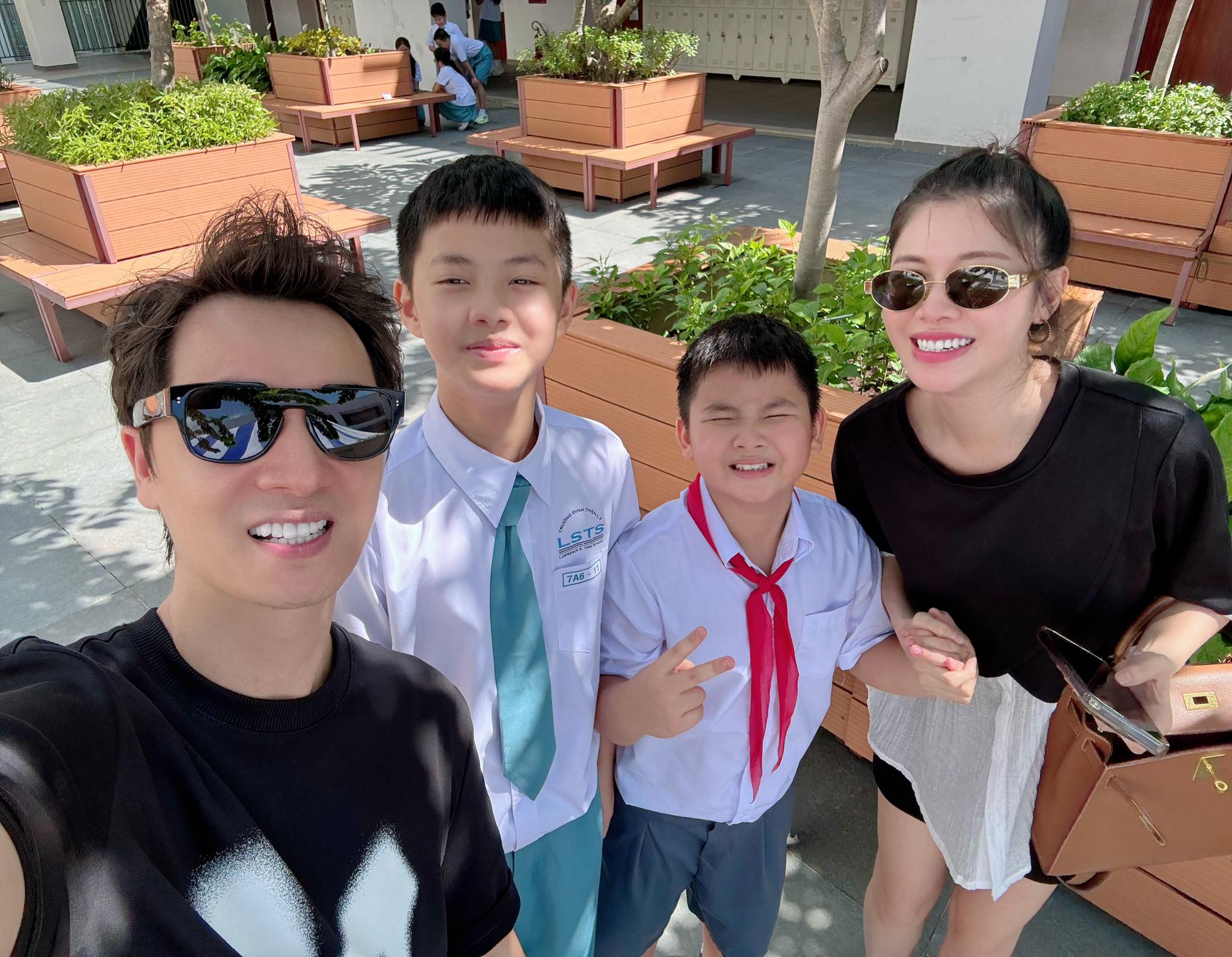 Vợ chồng Đăng Khôi chia sẻ hình ảnh cùng 2 quý tử dự khai giảng năm học mới. "Bố mẹ chúc 2 con trai yêu một năm học mới hạnh phúc, học giỏi và có thành tích tốt. Rèn luyện và cố gắng như bố trong 'Anh trai vượt ngàn chông gai' nhé các con yêu. Bố mẹ yêu các con nhiều lắm", nam ca sĩ viết.