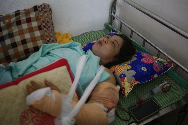 Tôi nghĩ mình chết ở đó chứ không thể sống nổi. Tôi không còn biết gì, khi mở mắt ra thấy chân đau và sưng vù, không cử động được. Không thấy chồng đâu, sau đó tôi chết lặng khi có người báo chồng tôi mất rồi, ông ấy bỏ mẹ con tôi ở lại", chị Lìu nghẹn lại.