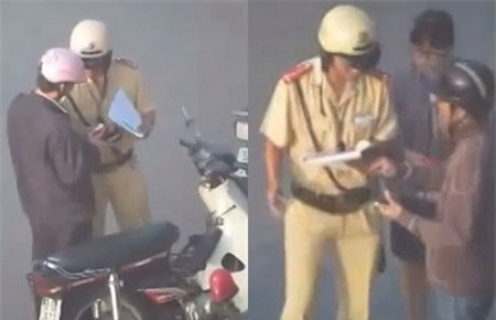 ông này đã đi ra một góc chuẩn bị và quay lại dúi vào tay anh CSGT. Anh