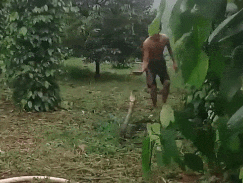 Con vật có vẻ khá "cứng đầu" trong khi nhóm 3 người đàn ông thay nhau nắm thân con rắn để lôi ra. Có người lo sợ nó có thể thụt vào trong và cuộn chặt nếu không biết lôi đúng cách.