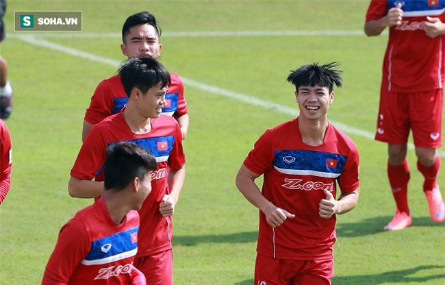 Công Phượng vui vẻ trêu đùa cùng các đồng đội trong suốt buổi tập.