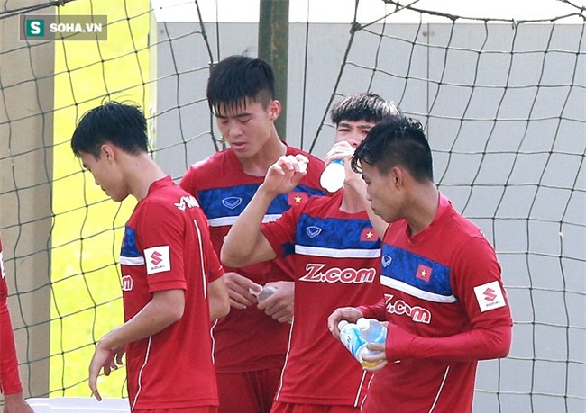 Phải tập dưới trời nắng gắt nên Công Phượng và đồng đội liên tục tiếp nước.