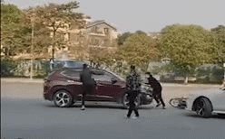 Thời điểm này, nhóm thanh niên khoảng 5-6 người lao vào tấn công, đập phá ô tô Hyundai màu đỏ. Bị bao vây tài xế lùi rồi bất ngờ nhấn ga bỏ chạy, tông ngã nam thanh niên đứng phía trước đầu xe.