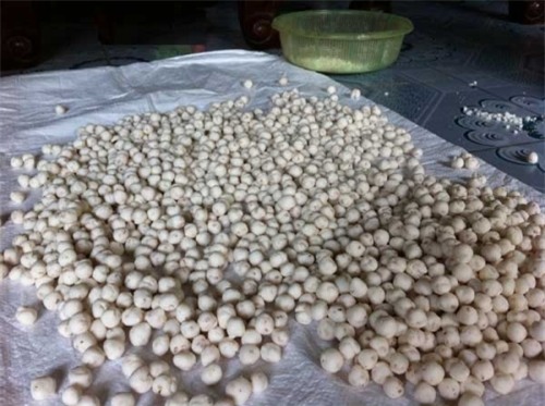 liệu không được che đậy, trân châu thành phẩm phơi trên nền đất. Do nhu