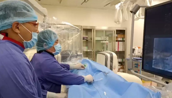 | Các bác sĩ Vinmec Đà Nẵng tiến hành ca can thiệp mạch não đầu tiên cho chị Hồng Vĩ |
