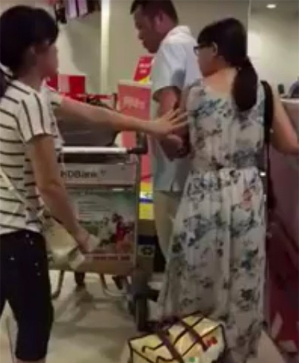 Ngay cả khi có nhân viên của hãng hàng không đến can ngăn và hòa giải thì cô gái vẫn lớn tiếng chửi người phụ nữ bằng những câu khó nghe. Thậm chí cô gái còn đuổi người phụ nữ đang bế con đứng dịch ra cho khỏi "ngứa mắt" và kêu "nhìn mặt đã biết không cùng đẳng cấp".