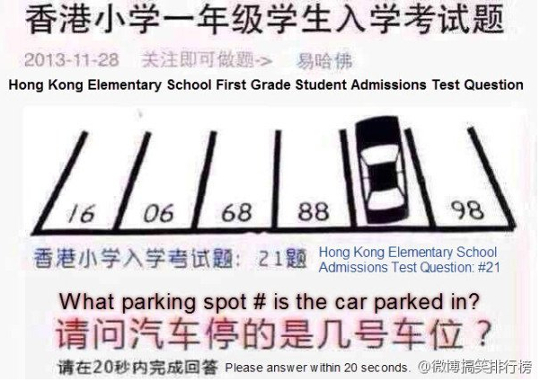 Tờ The Guardian của Anh từng đăng tải 2 bài toán trong chương trình học của học sinh lớp 1 tại Hong Kong để thách đố mọi người giải được trong thời gian cho phép là 20 giây.