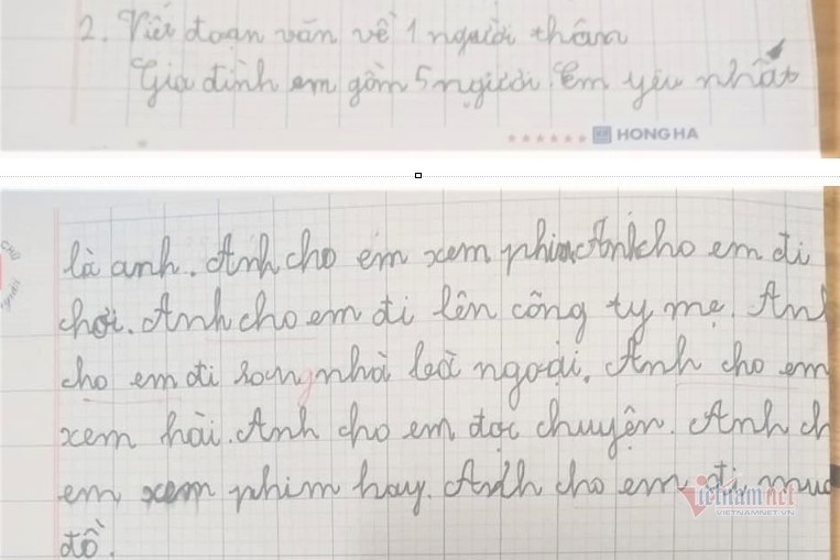Với yêu cầu viết đoạn văn về một người thân, bé học sinh lớp 2 đã kể về anh trai của mình, chỉ…. xoay quanh những câu chuyện đi đây đi đó.