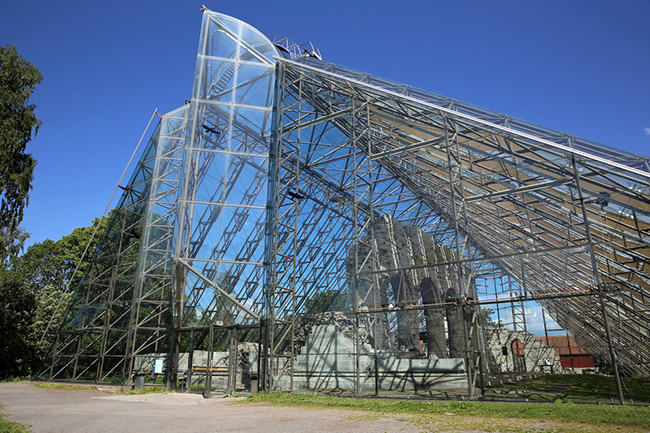 Bảo tàng Hedmark của Na Uy là một hình dạng kính khổng lồ bao quanh và bảo vệ tàn tích của một nhà thờ thế kỷ 12 bên trong.