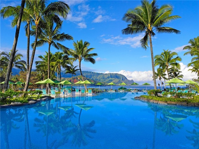 Khu nghỉ dưỡng St. Regis Princeville, Hawaii, Mỹ: Bể bơi của resort này rộng hơn 460 m2, nhìn ra dãy núi hùng vĩ và vịnh biển tuyệt đẹp của Kauai. Ảnh: CNTraveler.