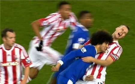 của Stoke City. Dù không bị trọng tài phát hiện, nhưng Fellaini vẫn bị