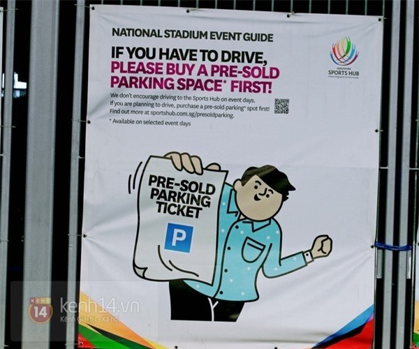 Trong trường hợp bạn buộc phải lái xe tới SVĐ thì hãy nhớ mua trước 1 chiếc vé đỗ xe tại website in trên biển báo.