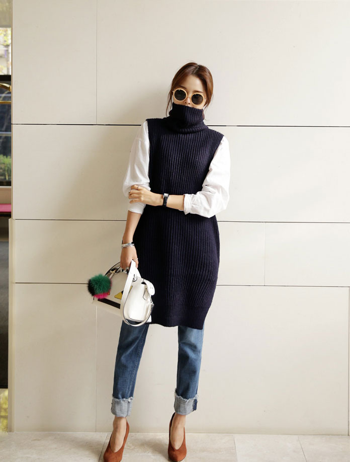 Áo gile cổ lọ rất tiện dụng và chưa bao giờ lỗi mốt