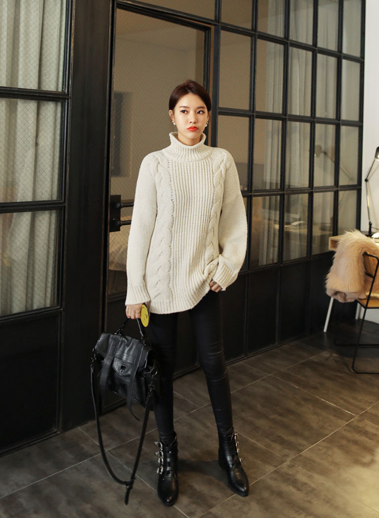 Không chỉ mang lại sự ấm áp trong mùa đông, những chiếc áo len cổ lọ oversize còn cho bạn sự thoải mái và vẻ sành điệu khi kết hợp quần jeans skinny hoặc legging