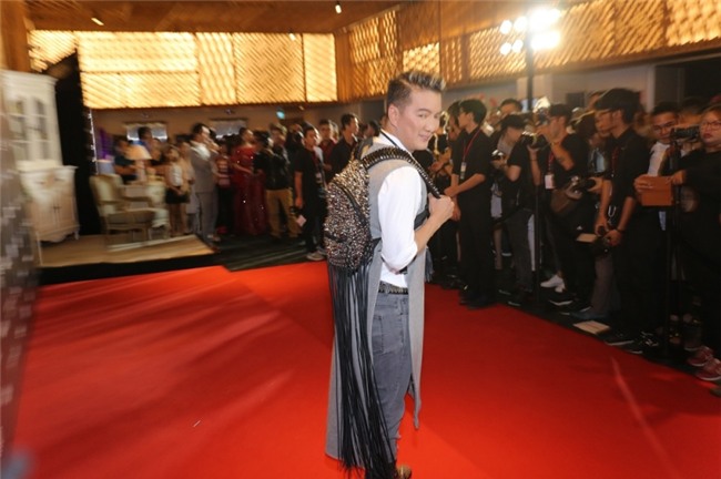 Hình ảnh Mr.Đàm xuất hiện tại VIFW 2017 với chiếc balo đinh tán tua rua kết hợp cùng áo vạt dài chiến binh..