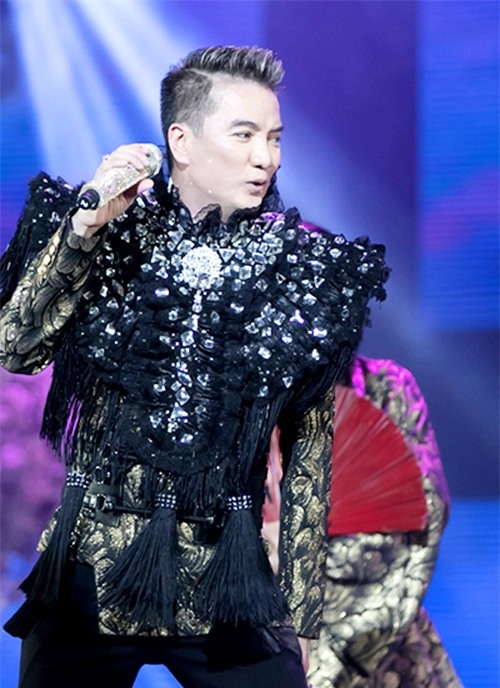 Những bộ trang phục diễn đính đá, diêm dúa cầu kì cộp mác Đàm Vĩnh Hưng không ít lần khiến người xem nhức mắt.