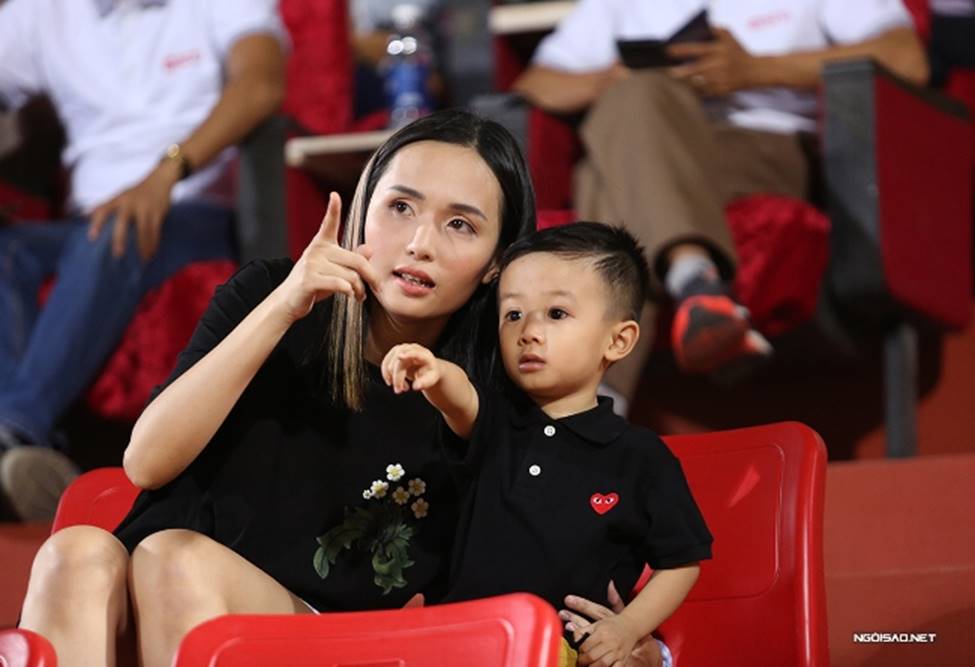 Nhóc tì có tên ở nhà là Sóc thường xuyên được mẹ đưa tới sân để cổ vũ cho bố mỗi khi CLB Hà Nội thi đấu trên sân nhà.