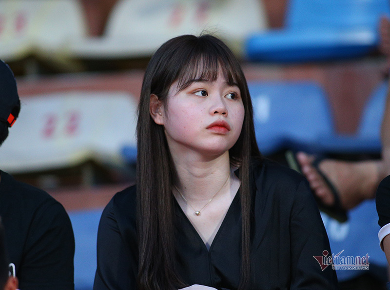 Giữa tâm bão bạn trai bị hack Facebook lộ tin nhắn "chăn rau", Huỳnh Anh - bạn gái hiện tại của Quang Hải vẫn xuất hiện trên khán đài cổ vũ trận bóng của người yêu khiến nhiều người cảm thấy "ấm lòng". Thay vì bỏ mặc bạn trai giữa scandal không đáng có thì cô nàng chọn cách im lặng và âm thầm động viên, ủng hộ người yêu trên sân cỏ.