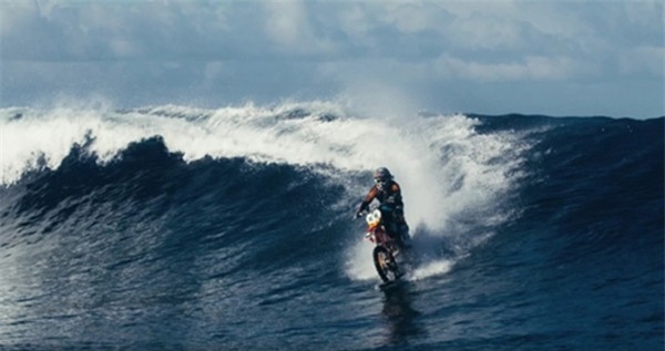 11. Người đàn ông cưỡi mô-tô đi trên mặt nước.