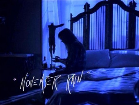 Xuyên suốt nội dung câu truyện trong MV của November Rain là những trận mưa không dứt. Khi mưa giông ập tới cũng là lúc nhân vật Axl bàng hoàng tỉnh giấc trong đêm. Sự lạnh lẽo của cơn mưa tháng 11 kéo tâm trí anh trở về với những kỉ niệm của một tình yêu đẹp nhưng chính cơn mưa ấy cũng đã cướp đi người phụ nữ của đời anh. Cô đã mãi mãi ra đi ngay trong ngày hạnh phúc nhất của cuộc đời mình. Hình ảnh chiếc quan tài nằm lặng lẽ dưới bó hoa màu đỏ loang máu và gương mặt Axl ngửa lên hứng những giọt mưa giá lạnh của cuộc đời trở thành nỗi ám ảnh khôn nguôi cho tất cả những ai đã từng xem MV này.