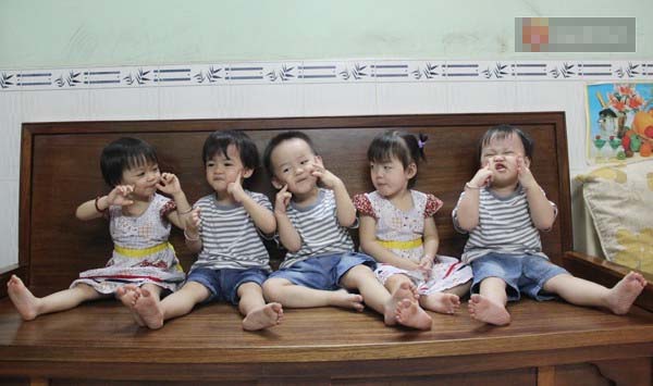 Năm đứa trẻ đáng yêu trong ca sinh 5 đầu tiên tại Việt Nam. Các bé ở nhà được gọi lần lượt là : Cả, Hai, Ba, Tư, Út.