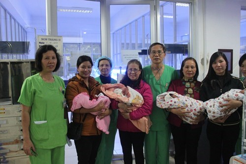 Được biết, sản phụ Phạm Thị Huế (mẹ 3 bé) mang thai tự nhiên, nhập viện ở tuần thứ 30 điều trị do dọa đẻ non và tuần thứ 33 thì 3 bé Hà Thái Rau – Hà Thái Củ - Hà Thái Quả ra đời với cân nặng lần lượt là 1,9 kg - 1,8kg - 1,7 kg.