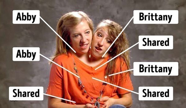 Sinh năm 1990, Abby và Brittany Hensel là cặp sinh đôi có chung một cơ thể nhưng có hai đầu riêng biệt. Họ có 2 bộ não với suy nghĩ cá nhân và trải nghiệm khác nhau chỉ trong một cơ thể.