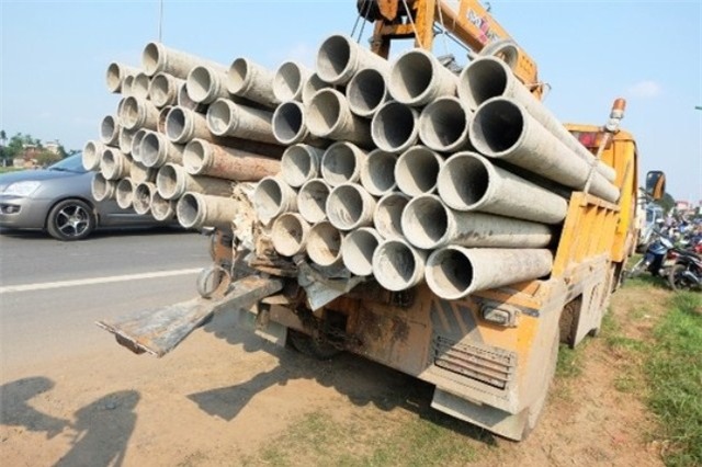 Chiều 30/3/2015, trên quốc lộ 32, đoạn chạy qua xã Phụng Thượng (Phúc Thọ, Hà Nội), xe bơm bê tông đang chạy hướng Sơn Tây - Hà Nội bất ngờ bị đứt móc nối làm ống bơm bêtông văng xuống đường.