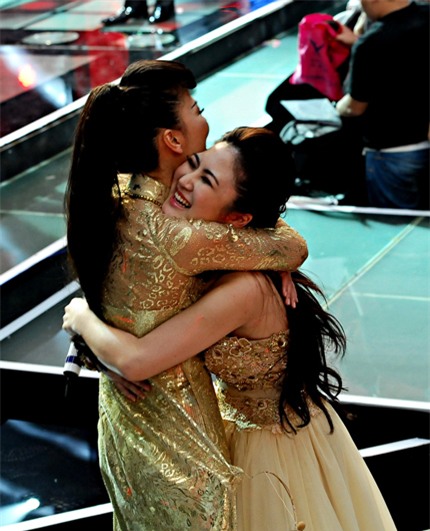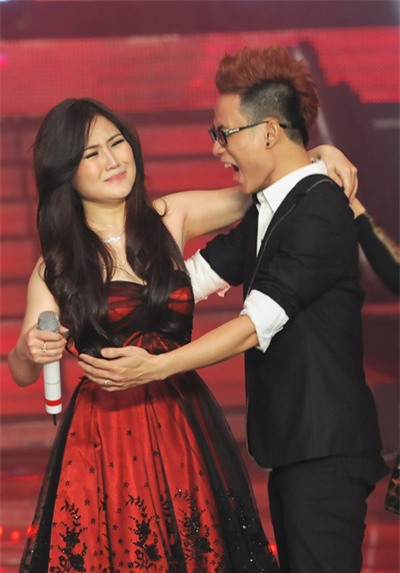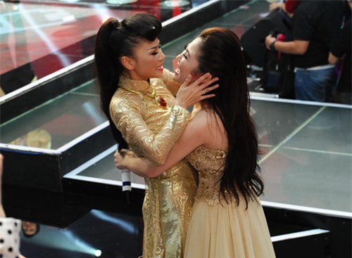 ôm nhau trong giây phút chiến thắng của Thu Minh và Hương Tràm tại The